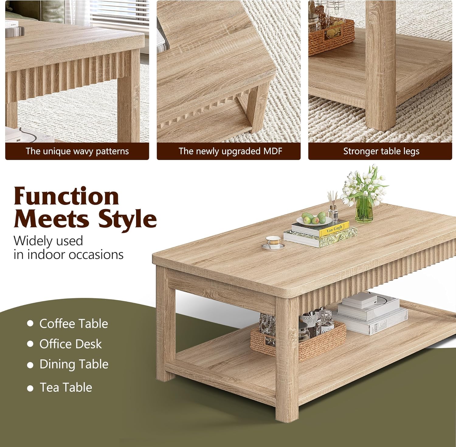 Crafted with high-quality materials, this coffee table is built to last and designed for both style and functionality. The 2-tier storage provides ample space for you to display your favorite decor items, store books, magazines, or keep essentials within easy reach.